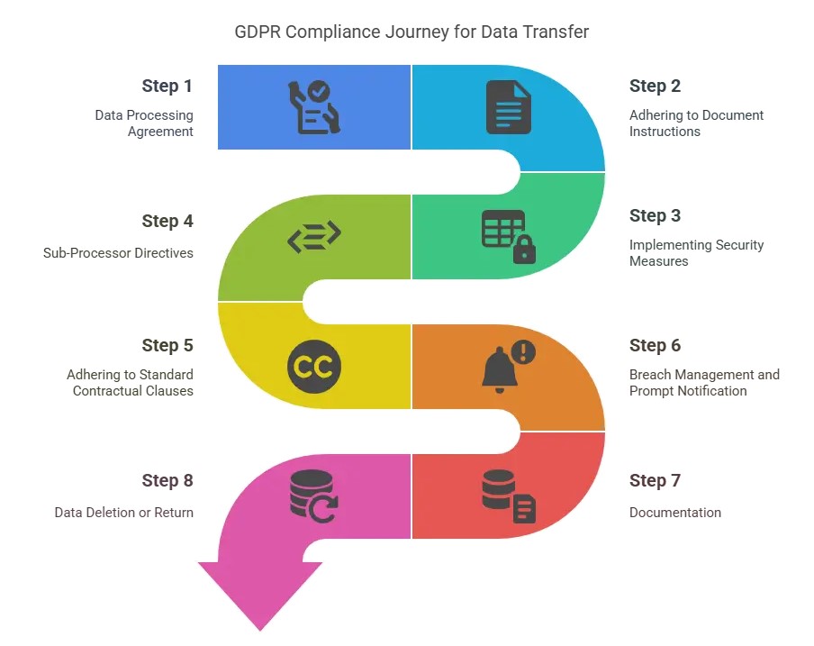 The GDPR requires cross-border data processors to adhere all their processing activities (any action taken on the data provided by the controller) in alignment with the defined objectives and take appropriate steps to safeguard its privacy.