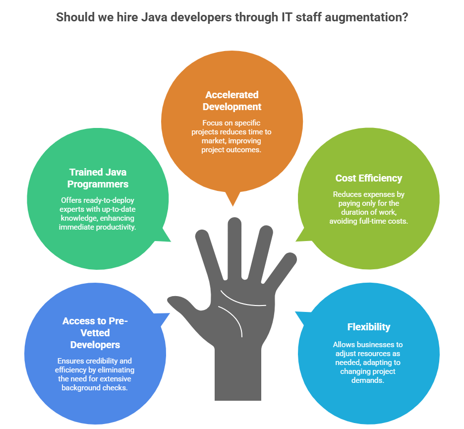Outsourcing Java developers or hiring Java developers from an IT staff augmentation company enables enterprises to access the required expertise on demand. This hiring model offers the following benefits: