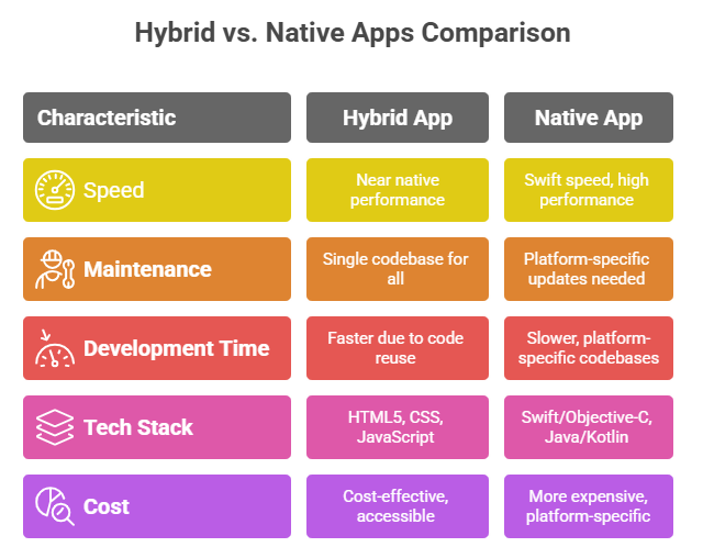 The choice between hybrid vs native app development depends on a combination of factors like budget, timeline, performance requirements, and user base.