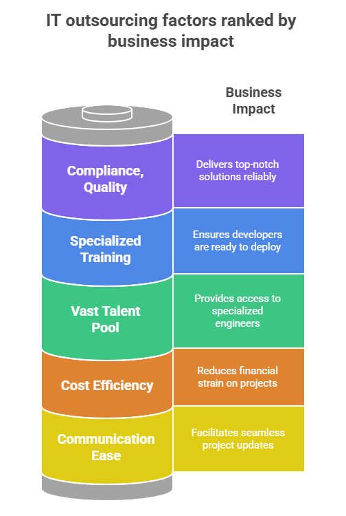 According to a Statista report, the projected revenue for the IT outsourcing market in India is expected to reach USD 12.41 bn in 2025. This indicates the global reliance on India’s specialized developers and their ability to deliver top-notch solutions, aligning with unique business needs. Discussed below are reasons why businesses across the globe, including the UK, USA, EU, and UAE, prefer to hire dedicated developers with specialized expertise from India: